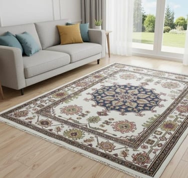 Our hand-knotted carpets are crafted by skilled artisans in Bhadohi the carpet city of India, a region globally known for centuries-old weaving traditions. Each carpet is made knot by knot using time-honored techniques, ensuring durability, fine detailing, and timeless beauty. Woven from high-quality natural fibers, every piece reflects authentic craftsmanship, cultural heritage, and unmatched attention to detail — no two carpets are ever the same.